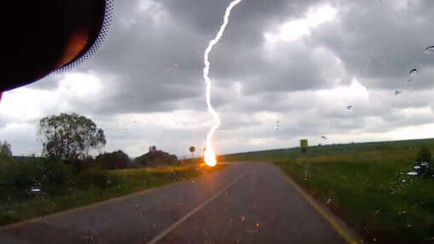 В Башкирии молния едва не ударила в движущийся автомобиль. Видеозапись инцидента разместил паблик "Баш ДТП Уфа и Башкортостан" в соцсети "ВКонтакте". На кадрах с автомобильного видеорегистратора видно, что разряд атмосферного электричества ударил в проезжую часть дороги в непосредственной близости от проезжающего автомобиля. Разряд пришелся на обочину дороги. После удара образовалось облачко дыма. Автомобиль с видеорегистратором ехал по двухполосной дороге в сельской местности, навстречу ему проехал еще один автомобиль. До этого в Ростове-на-Дону автомобиль въехал внутрь павильона на автозаправочной станции. Седан протаранил двери АЗС, сбил витрину и остановился около кассы. В результате аварии пострадал сотрудник АЗС.