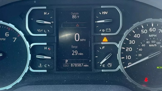 Пользователь соцсети Reddit поделился фотографией панели приборов пикапа с показаниями 878 987 миль (1,41 миллиона километров) и дилерской наклейкой о прохождении ТО на отметке 878 400 миль. Водитель подтвердил, что Toyota Tundra сохранила исходный 5,7-литровый V8, но на пробеге полмиллиона миль (805 тысяч километров) пришлось поменять трансмиссию.