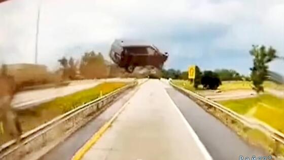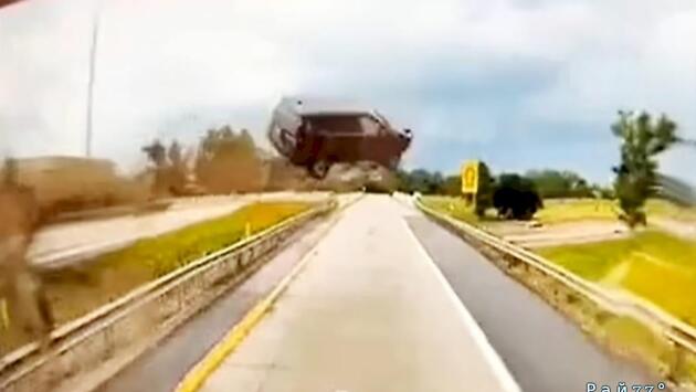 Работник транспортной компании, прокладывающий маршрут на грузовике по скоростному шоссе I-75, в окрестностях города Оберн-Хиллз (штат Мичиган, США), стал очевидцем стремительного перемещения внедорожника по воздуху.