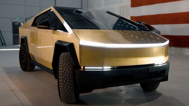 Американский блогер покрыл Tesla Cybertruck чистым золотом