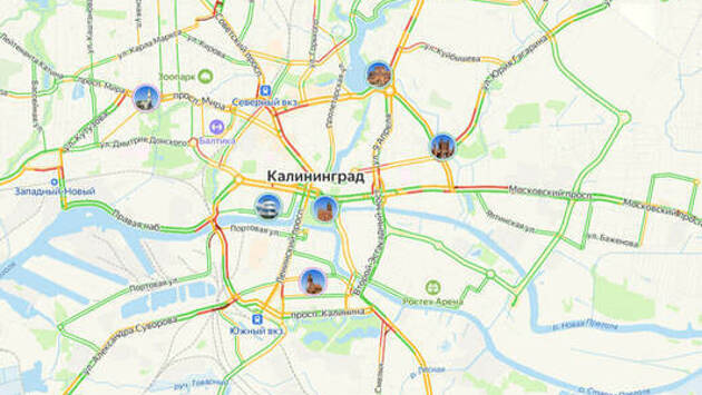 Движение затруднено на основных магистралях города. О ДТП не сообщается. Общая дорожная ситуация в Калининграде оценивается в пять баллов.