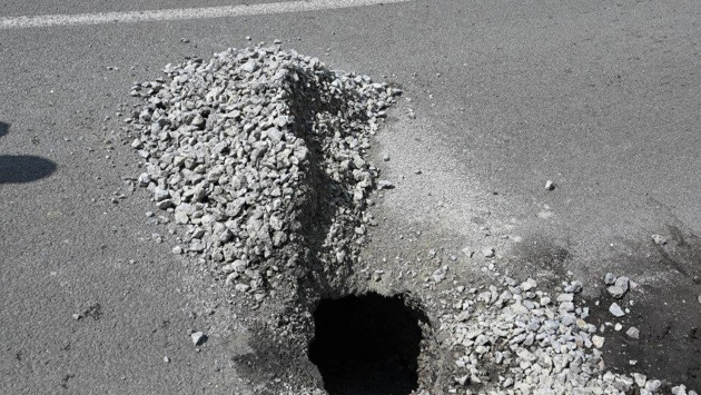 В одном из кузбасских городов просел грунт под дорожным полотном. В результате на проезжей части возникла дыра.