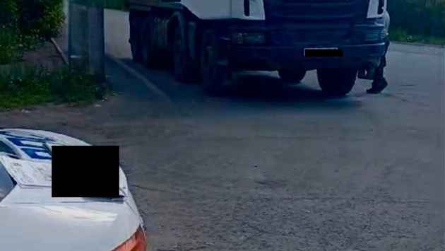 В Ленинске-Кузнецком сотрудники Госавтоинспекции заметили припаркованный грузовой автомобиль Scania, водитель которого прикручивал госномера.