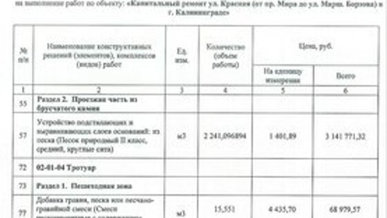 В карточке закупки указано, что компанию ООО «Мосинжиниринг» за срыв сроков оштрафовали на 2,5 миллиона рублей. В обновлении от 13 июня появилась смета на дополнительные работы. Из бюджета будет оплачено 3,5 миллиона. Деньги направлены на подсыпку песка под брусчатку на дороге и добавку цементной смеси на тротуарах.