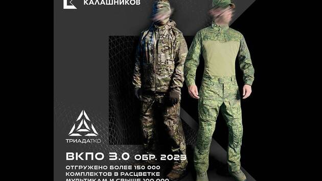 «"Триада-ТКО" поставила в первом полугодии этого года свыше 150 тысяч комплектов ВКПО 3.0 образца 2023 года в семицветной расцветке "Мультикам" и более 100 тысяч комплектов ВКПО 3.0 образца 2023 года в расцветке "Цифра" в адрес заказчика», — говорится в сообщении.