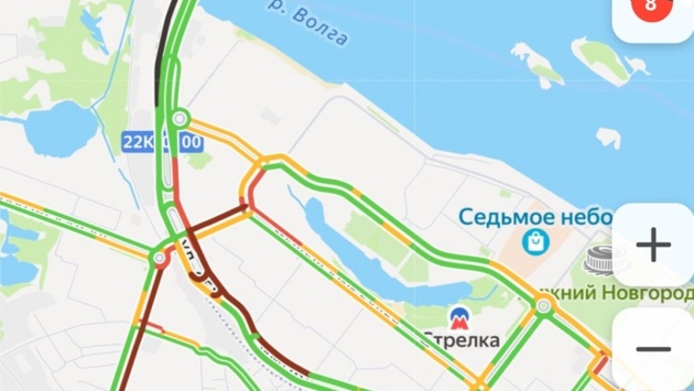 Гигантская пробка образовалась около Борского моста в Нижнем Новгороде вечером 4 июля. Об этом свидетельствуют данные сервиса «Яндекс. Пробки».