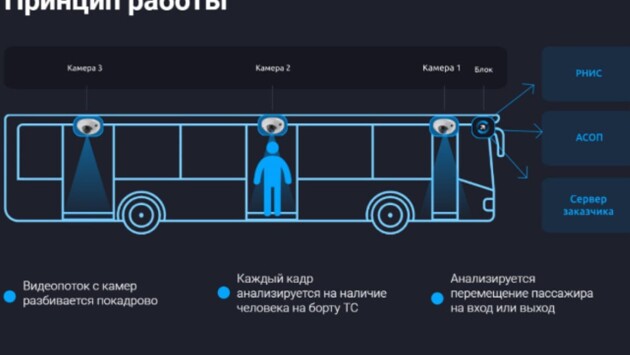 Камеры будут соединены в единую систему и работать в режиме онлайн. В основе системы искусственный интеллект, который регулярно будет обновлять посчитанных пассажиров и заполненность салона автобуса. Вся собранная информация поступит в систему для формирования отчетов.