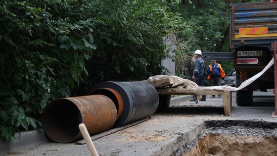 По адресу: ул. Ветошкина, 23, специалисты подрядной организации «ГидроСтрой» меняют обратный и прямой трубопроводы диаметром 500 мм на выходе из тепловой камеры. Также на участке проводится замена сильфонного компенсатора диаметром 500 мм.