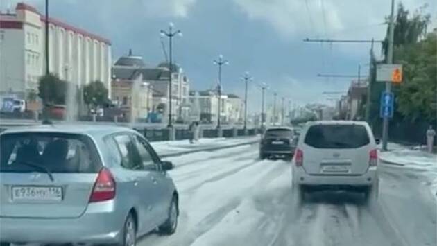 В российском городе неожиданно выпали снег и град. Соответствующие кадры, снятые местными жителями, публикует Telegram-канал «Двач».