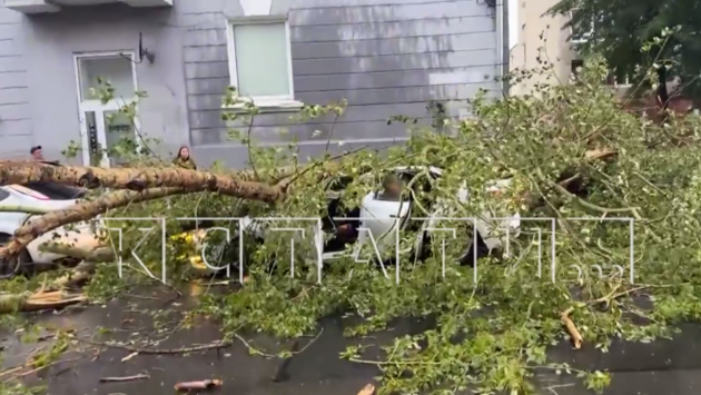 Упавший на авто тополь чуть не убил отца с дочерью в Нижнем Новгороде