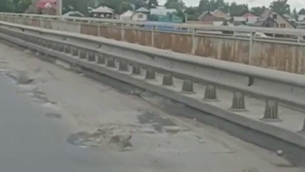 С моста по улице Кирова в Новосибирске «сползает» асфальт