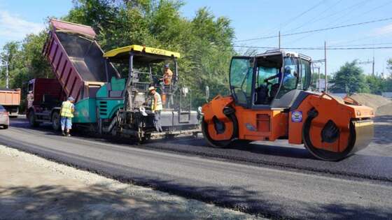 В настоящий момент подрядная организация завершила процесс фрезеровки старого покрытия и приступила к укладке нижнего слоя асфальтобетона.