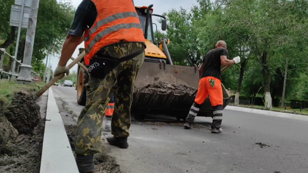 В Оренбурге на проспекте Парковом идет устройство бордюров