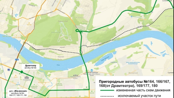Изменится схема движения и пригородных маршрутов № 164 "Ж/д вокзал – с. Силино", №166/167 "Ж.д. Вокзал – д. Упоровка", № 168 "Драмтеатр – с.о. Журавли", № 169/177 "Ж.д. Вокзал – д. Тебеньки", №180 "Ж/д вокзал – д/о Шахтер". Они поедут: ж/д вокзал, просп. Кузнецкий, просп. Советский, ул. 50 лет Октября, ул. Красноармейская, Красноармейский мост, ул. Соборная, просп. Октябрьский, ул. Терешковой, Кузбасский мост, Леснополянское шоссе, Журавлевы горы, Елыкаевская трасса и далее по своим маршрутам в прямом и обратном направлениях.