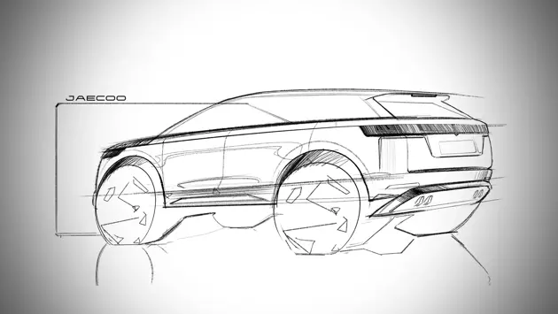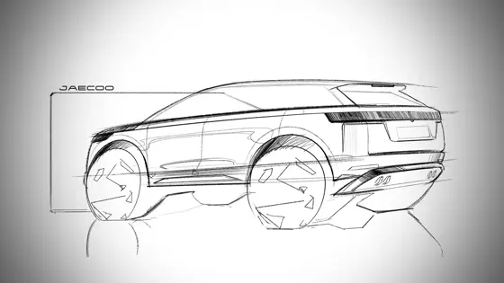 Первый дизайнерский скетч Jaecoo J5 был опубликован в конце июля: на нем кроссовер был изображен с сильно заваленными задними стойками и скошенной крышей на манер Range Rover Evoque. Тогда же появилась информация, что J5 будет соответствовать классу A0, а расстояние между колес у него составит 2620 миллиметров — по этому параметру он поставим с Geely Coolray, Chery Tiggo 4 Pro и Haval Dargo. Модели были обещаны как полностью электрические, так и гибридные силовые установки, а также несколько вариантов обычных двигателей внутреннего сгорания.