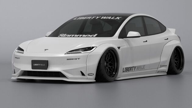 Японское тюнинг-ателье Liberty Walk, известное своими агрессивными вариациями известных автомобилей, представило собственную версию электромобиля Tesla Model 3.