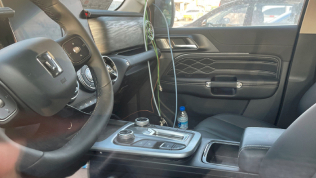 У внедорожника на шпионских снимках есть и отличие на центральном тоннеле: на нем отсутствует селектор трансмиссии, так как его перенесли на рулевую колонку — и это решение не выглядит готовым к серийному производству. Рулевое колесо тоже новое, оно двухспицевое и имеет D-образный профиль.