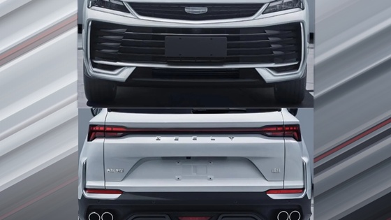 Двухствольный выхлоп на Coolray не новинка - такой появлялся на версии Binyue Cool, но у автомобиля на опубликованных фотографиях он имеет другой дизайн, к тому же пластика сделана менее агрессивной, чем у Binyue Cool. Кроссовер обзавёлся новыми задними крыльями, крышкой багажника, фонарями чуть изменённой формы и рисунком. Вертикальные светоотражатели заменили на горизонтальные, что логично - в стиле новой концепции, а надпись "Geely" расположили под соединяющей фонари поперечиной.