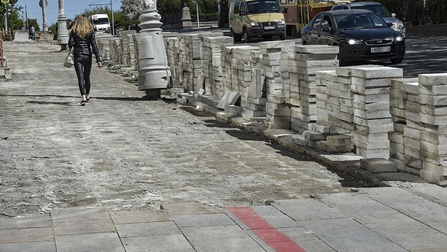 "Мы применяем (при ремонтах улично-дорожной сети – прим. ред.) современные материалы и современную технику, качество произведенных работ значительно улучшается, – подчеркнул вице-мэр. – Начали на тротуарах уходить от бетонной плитки, которая в целом себя показывает хуже, чем асфальтобетон. На периферийных улицах точно будем уходить на асфальтобетон, что касается центра города, исторической его части, там надо оставлять плитку". По словам Алексея Бубнова, при выборе плиточного покрытия тротуаров приоритет будет отдаваться "широкоформатному" варианту размерами 30 на 30 сантиметров.