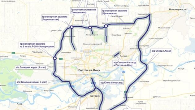 — Строительство ростовского кольца – в завершающей фазе. Большая часть дорожных объектов, входящих в Ростовское транспортное кольцо, уже сдана или в высокой степени готовности. Так, досрочно завершены работы по строительству нового участка обхода Аксая на федеральной автодороге М-4 «Дон», третьей очереди Северного обхода города Ростова-на-Дону, мостового перехода через Ростовское водохранилище, — говорится в сообщении.