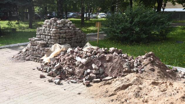 В Вологде продолжается ремонт брусчатки на городских тротуарах