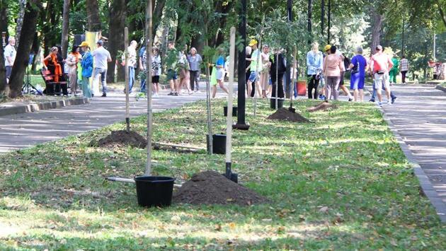 Акция сопровождалась высадкой нескольких деревьев.