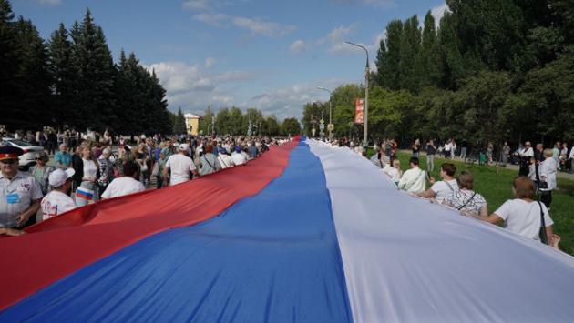 В Отрадном растянули флаг длиной 1012 метров. В мероприятии (0+) приняли участие представители молодежных движений, юнармейцы и жители города. В рамках акции "Zа Россию" больше тысячи людей пронесли триколор по одной из главных улиц города. Фото: Андрей Савельев В областной столице школьники, которым исполнилось 14 лет, получили свои первые паспорта. Фото: Андрей Савельев По центральным транспортным артериям столицы региона прошел тематический автопробег: собралось более 20 машин. Фото: Дмитрий Бурлаков А на самарской набережной горожанам раздавали ленточки в цветах российского флага. Фото: СОВА Вечером главная телевышка региона окрасилась в цвета триколора. Фото: СОВА Кроме того, россиян с орбитальной станции поздравил наш земляк, космонавт Олег Кононенко.