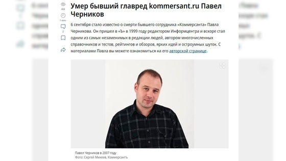 Скончался бывший главный редактор сайта газеты «Коммерсант» Павел Черников, сообщило издание.