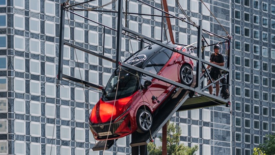 Компания Nissan установила рекорд Книги Гиннесса, который звучит как «самый высокий прыжок на автомобиле с тарзанки», пишет сайт 110km.ru. Для этого краном на высоту 65 метров подняли специальную «клетку» с кроссовером Qashqai, предварительно разобрав его салон и оставив лишь кресло водителя и приборную панель. Саму «клетку» сконструировали таким образом, чтобы она выдерживала вес автомобиля как в горизонтальном положении, так и под углом 45 градусов, необходимым для придания нужного импульса перед прыжком.