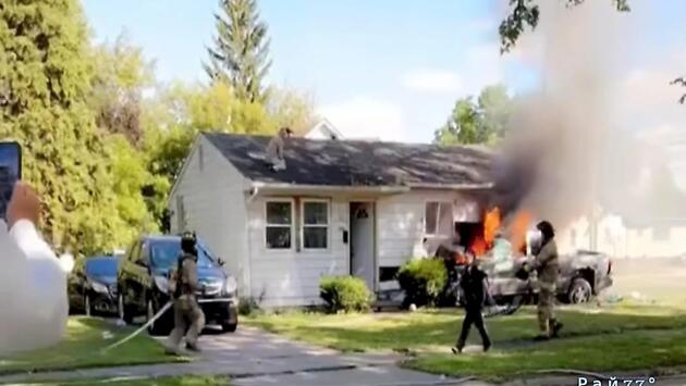 Американский неадекват вылетел из автомобиля и приземлился на крыше дома