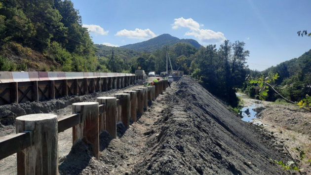 После того, как подпорные стены установят, начнутся работы по замене дорожного покрытия, укреплению обочин и берегоукреплению.