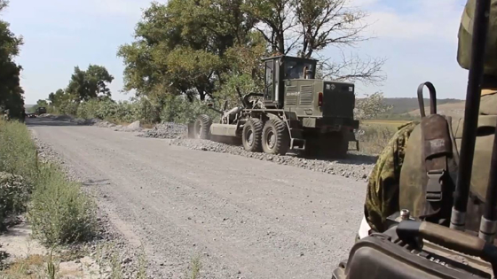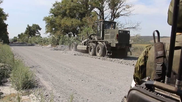 Дорожно-комендантские подразделения бригады МТО группировки войск «Запад» продолжают восстанавливать автомобильные дороги общего пользования, соединяющие Луганскую Народную Республику и Харьковскую область