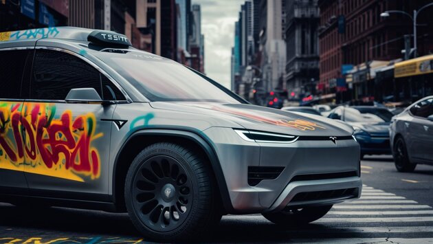 На фотографии, первоначально опубликованной на Reddit (автор с тех пор удалил свой профиль), изображен небольшой автомобиль, обтянутый желтой пленкой. Необычная форма автомобиля, включая квадратную заднюю часть, странный выступ на крыше и не менее странные углубления на капоте, затрудняют расшифровку его окончательного дизайна. Хотя некоторые подозревают, что эти черты - намеренные, тестовый автомобиль на территории Warner Bros. совпадает с прошлыми слухами о презентации роботакси Tesla у компании.