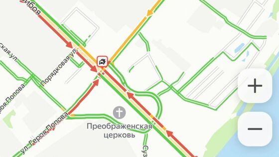 Судя по картам ДТП произошли на проспекте Гагарина, улице Максима Горького, на улице Новикова-Прибоя. На ней, а также на Мызинском мосту, улице Ларина и у развязки в Ольгино все дороги «бордовые».
