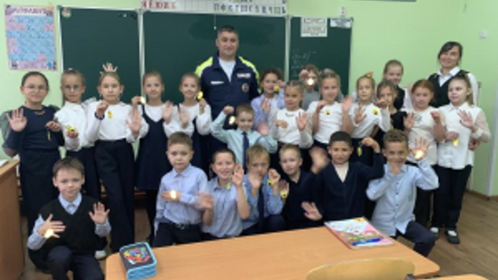 В гости к третьеклассникам первой йошкар-олинской школы пришел инспектор дорожно-патрульной службы — папа одного из учеников. Встречи с настоящими полицейским для детей всегда интересны и познавательны. И правила безопасного поведения на дороге, усвоенные на таких встречах, запоминаются лучше, чем в ходе обычного занятия. Старший лейтенант полиции Андрей Келдыбаев рассказал ребятам о том, как важно всегда соблюдать правила дорожной безопасности: быть внимательными на улице, не играть рядом с дорогой и переходить проезжую часть только по пешеходному переходу, крепко держась за руку взрослого. Вместе с инспектором дети вспомнили основные правила для пешеходов, правила поведения в автомобиле и общественном транспорте, закрепили знания о дорожных знаках и их значениях. Ребятам напомнили, какую важную роль на дороге играет светофор и какие сигналы он подает для водителей и пешеходов. В завершении встречи ребята получили световозвращающие подвески и сделали совместное памятное фото.