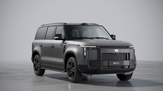 Новинка представляет собой полноразмерный внедорожник, который внешне напоминает Land Rover Defender, особенно силуэтом и остеклением. У «ноль-первого» подвеска на двойных поперечных рычагах спереди и многорычажная сзади, адаптивные амортизаторы, 205-миллиметровый дорожный просвет, а углы въезда и съезда равны 22,2 и 25,1 градуса соответственно.