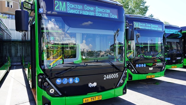 В Сочи доставили партию из девяти новых электробусов большого класса и три зарядные станции. Транспорт снабжен климат-контролем, видеонаблюдением, автоматической системой обнаружения и тушения пожара, валидаторами для безналичной оплаты проезда, USB розетками, электронными рейсоуказателями, системой ограничения скорости, медиапанелями, а также соответствует требованиям безбарьерной среды.