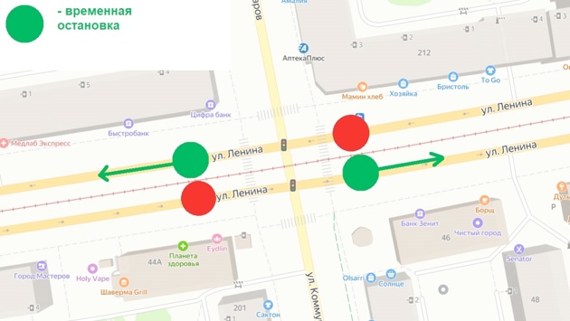 С 08:00 28 сентября до окончания движения 29 сентября трамваи будут останавливаться после перекрёстка улиц Ленина и Коммунаров в оба направления. Это касается транспорта, следующего по трамвайным маршрутам №№2, 5, 10, 12.