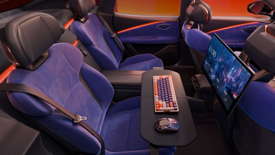 Справа добавили 17-дюймовый AMOLED-дисплей Samsung с разрешением 3K, частотой обновления 90 Гц и интерфейсом от Meizu Flyme Auto. В оснащении — процессор AMD Ryzen Embedded V2000A, дискретная видеокарта AMD Radeon RX 6600M, терабайт памяти и система жидкостного охлаждения. За звук отвечает премиум-аудиосистема Harman Kardon с 23 динамиками.