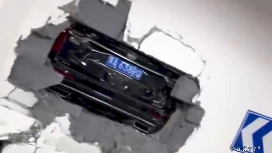 Житель китайского мегаполиса, выезжая с территории подземной стоянки, запечатлел последствия перемещения владельца легковушки, по всей видимости перепутавшего педали.