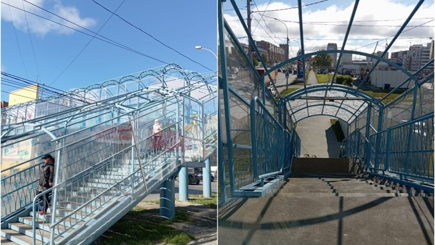 На путепроводе рядом с остановкой «Завод торгового оборудования» на 95% смонтировали поликарбонат. Возле «Звездной» в поликарбонат одели лестничный спуск №1 и кровельную часть пролетного строения. В ближайшее время подрядчик займется поручнями, пандусами, декоративной подсветкой и системой видеонаблюдения.