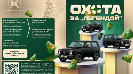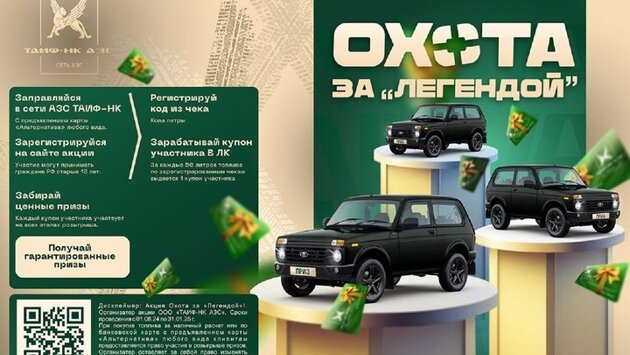 Регистрация чеков для участия в акции проводится по 31 января 2025 года. Принять участие в "Охоте за Легендой" могут только граждане РФ старше 18 лет. А в ТАИФ-НК АЗС напоминают, что в октябре каждого, кто заправляется в сети, ожидает приятный бонус: при единовременной заправке от 30 литров, при предъявлении карты "Альтернатива", предоставляется скидка до 2 рублей за каждый литр топлива.