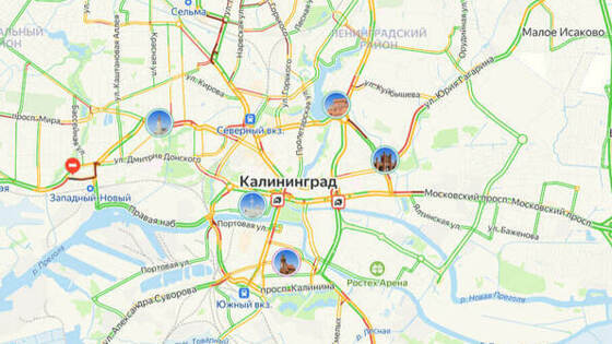 Калининград утром во вторник, 15 октября, встал в пробках. Об этом говорят данные сервиса «Яндекс.Карты».