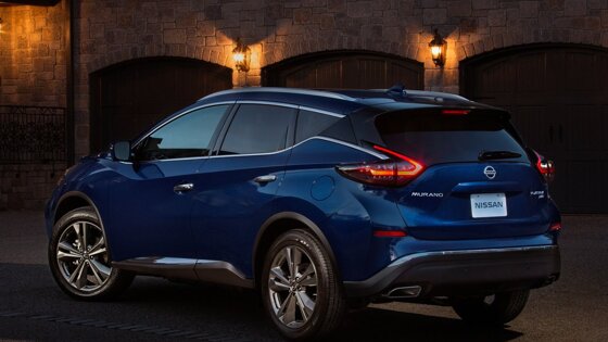 Во внешности нового Murano можно разглядеть отсылки с чисто электрическому кроссоверу Ariya, а также к новому Nissan Kicks: двухярусная оптика, с интегрированными в решётку радиатора дневными ходовыми огнями. Задняя стойка имеет крутой наклон, что делает "Мурано" близким к формату кросс-купе.