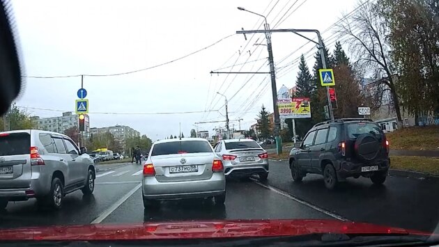 Впереди в той же полосе двигалась «Лада» с госномером Р682АО/58. Ее водитель, увидев, что другие машины стоят, втиснулся между рядами и проехал на запрещающий сигнал светофора. Пешеходов на дороге в тот момент не было.