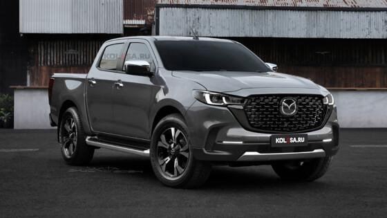 На этом тизере изображён лишь сильно затемнённый вид спереди, однако уже можно рассмотреть новые фары с графикой светодиодных огней, выполненных в стиле обновлённого кроссовера Mazda CX-5. Также виден существенно увеличенный логотип, вследствие чего можно предположить, что и решётка станет более крупной. Наверняка изменится и дизайн переднего бампера — мы изобразили один из возможных вариантов. Что же касается задней части, то в этой области производители пикапов обычно очень консервативны, и едва ли можно ожидать существенных изменений. Но мы всё же представили вариант с обновлённой графикой светодиодных габаритных огней, сделанной также в стиле современных кроссоверов компании.