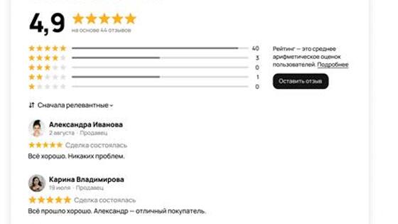 Форма отзыва подстраивается под тип сделки между пользователями: для сделок по продаже товаров с доставкой и аренде квартир вопросы будут различаться. Для обеспечения конфиденциальности в отзывах о покупателях не будет отображаться название объявления, по которому была совершена сделка.