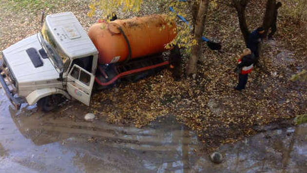 В Подмосковье ассенизаторская машина утонула в нечистотах, пытаясь их откачать