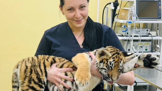 Тигренок поступил на осмотр нижегородским ветеринарам