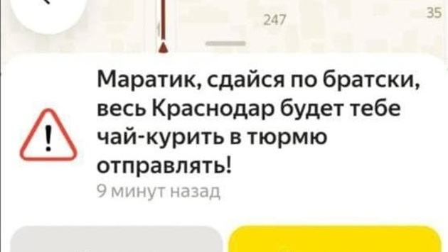 В ответ на операцию «Антитеррор» в обществе последовала моментальная реакция. Горожане не теряли позитив и веселили друг друга в пробках, общаясь через оповещения о дорожной ситуации в сервисах о пробках. Часть публикация была посвящена проклятиям преступника, другая — просьба сдаться. На это обратили внимание в телеграм-канале «Россия.Кубань».
